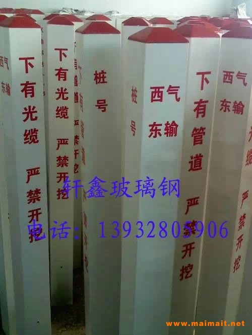玻璃鋼標志樁,警示牌,標志磚。廣泛應用于電力、天然氣、供水、通信、污水、石油、石化、礦山等管線地埋隱蔽工程。