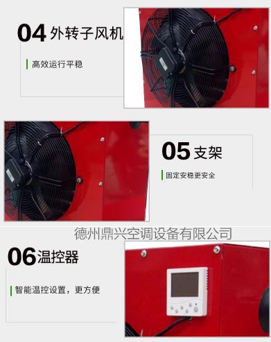 大棚溫室暖風機可裝配在自動控溫鍋爐上使用。根據不同花卉品種的需求,隨意設置供暖溫度,并且全部自動控制,從而取代了老式供暖設施升溫慢的問題。溫室內十分鐘快速提溫成為現實,初裝和運營成本實現雙低,實現了溫室大棚冬季取暖的全新變革。在實用中受到了廣大用戶的一致好評。產品屬性本產品分體設計、結構合理、結構緊湊、空間布置靈活、占地面積小,可不占用棚內生產空間。節能高效、溫室適宜,且拆裝方便,使用壽命長、造價低。